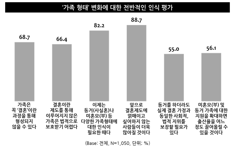 ● 미혼자 68.7% “가족은 꼭 결혼이라는 과정을 통해 형성되지 않을 수 있다”