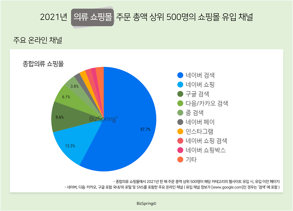 종합의류 쇼핑몰의 주요 온라인 채널 유입 비율