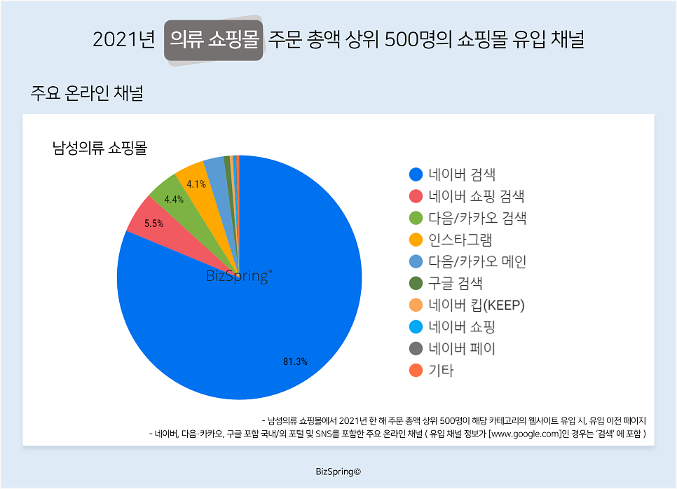 남성의류 쇼핑몰의 주요 온라인 채널 유입 비율