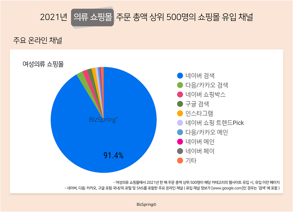 여성의류 쇼핑몰의 주요 온라인 채널 유입 비율