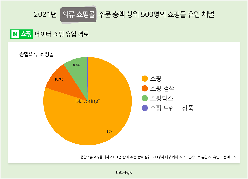 종합의류 쇼핑몰의 네이버 쇼핑 상세 유입 비율