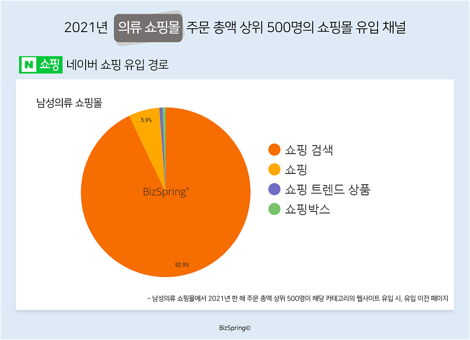 남성의류 쇼핑몰의 네이버 쇼핑 상세 유입 비율