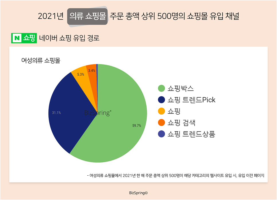 여성의류 쇼핑몰의 네이버 쇼핑 상세 유입 비율