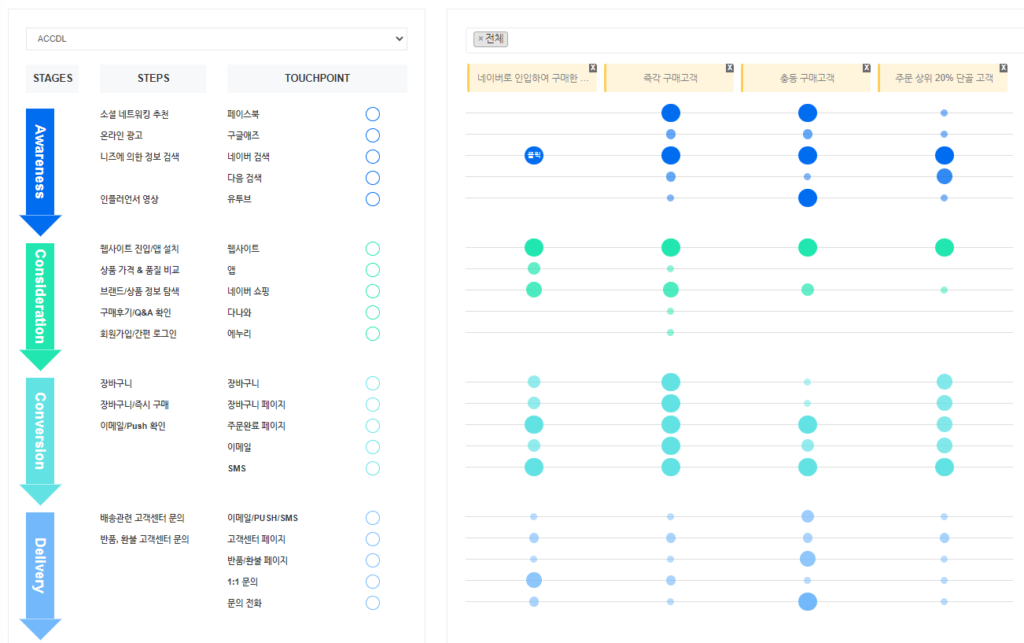 현재 신규 또는 기존 고객이 여정의 어느 단계에 위치하는가에 대해 알 수 있다면 데이터 마케팅 활동에 많은 도움을 받을 수 있을 것입니다.