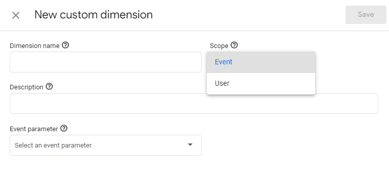 표준 디멘션(standard dimensions)이 아닌 맞춤 매개변수를 수집한 후 보고서에 사용하려면 맞춤형 디멘션(custom dimensions)을 생성해야 합니다. 스콥은 맞춤 디멘션 데이터가 계산되는 방법을 결정합니다. 현재 GA4에는 이벤트, 사용자, 그리고 제품, 이렇게 3가지의 스콥이 있습니다. 향후에는 세션 스콥도 기대할 수 있을 것입니다. 이는 GA4의 공식 제품 로드맵에도 나와있습니다.