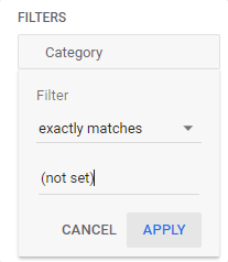 모든 페이지 방문에 대해 page_view 이벤트를 트래킹하지만 카테고리 페이지에는 하나만 있습니다. 따라서 페이지에 대한(설정되지 않음) 값이 표시되고 값이 적합한 것입니다. 카테고리 페이지에서 page_view 이벤트만 보려면 이 리포트에 필터를 추가하여 (설정되지 않음) 매개 변수를 필터링하면 됩니다.