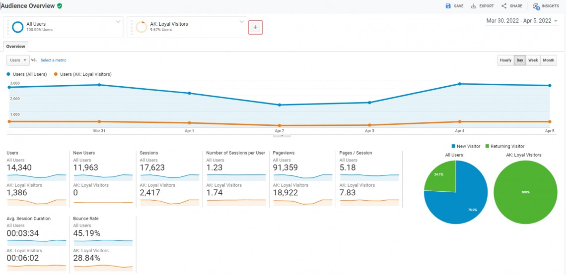 쉬워보이지만 여기엔 함정이 있습니다. 사전 정의된 보고서에 이미 존재하는 매개변수로만 세그멘트할 수 있습니다. 페이지 보기가 5개 이상인 경우 오디언스를 작성하지 않으면 불가능합니다. 따라서 기본적으로 보고서를 세그멘트하려면 탐색을 사용해야 합니다. 표준 보고서는 분석보다는 보고 기능에 중점을 두고 있습니다.