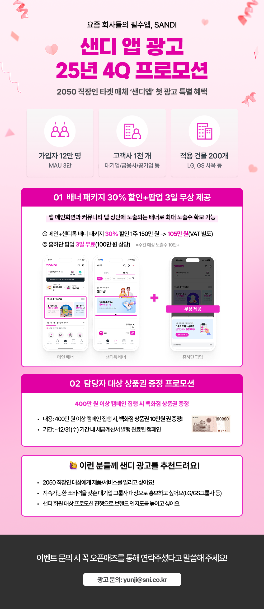 혜택 1 배너광고 30% 할인+홈하단 팝업 3일 무료