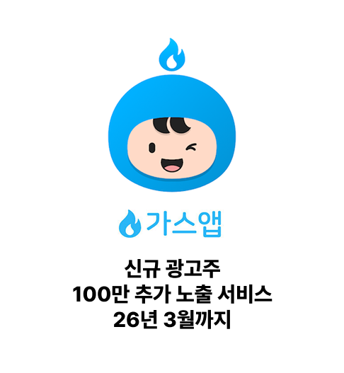 전국 유일 도시가스 모바일 고지서 서비스 가스앱에서 3월말까지 신규 광고주 추가 노출 서비스를 제공해드립니다.