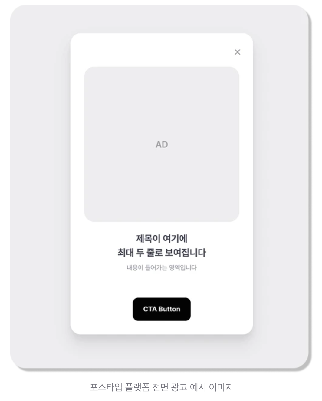 포스타입이 유저의 시선을 압도적으로 점유하는 고임팩트 신규 광고 상품, <<전면 광고 (Interstitial)>>를 정식 런칭합니다.