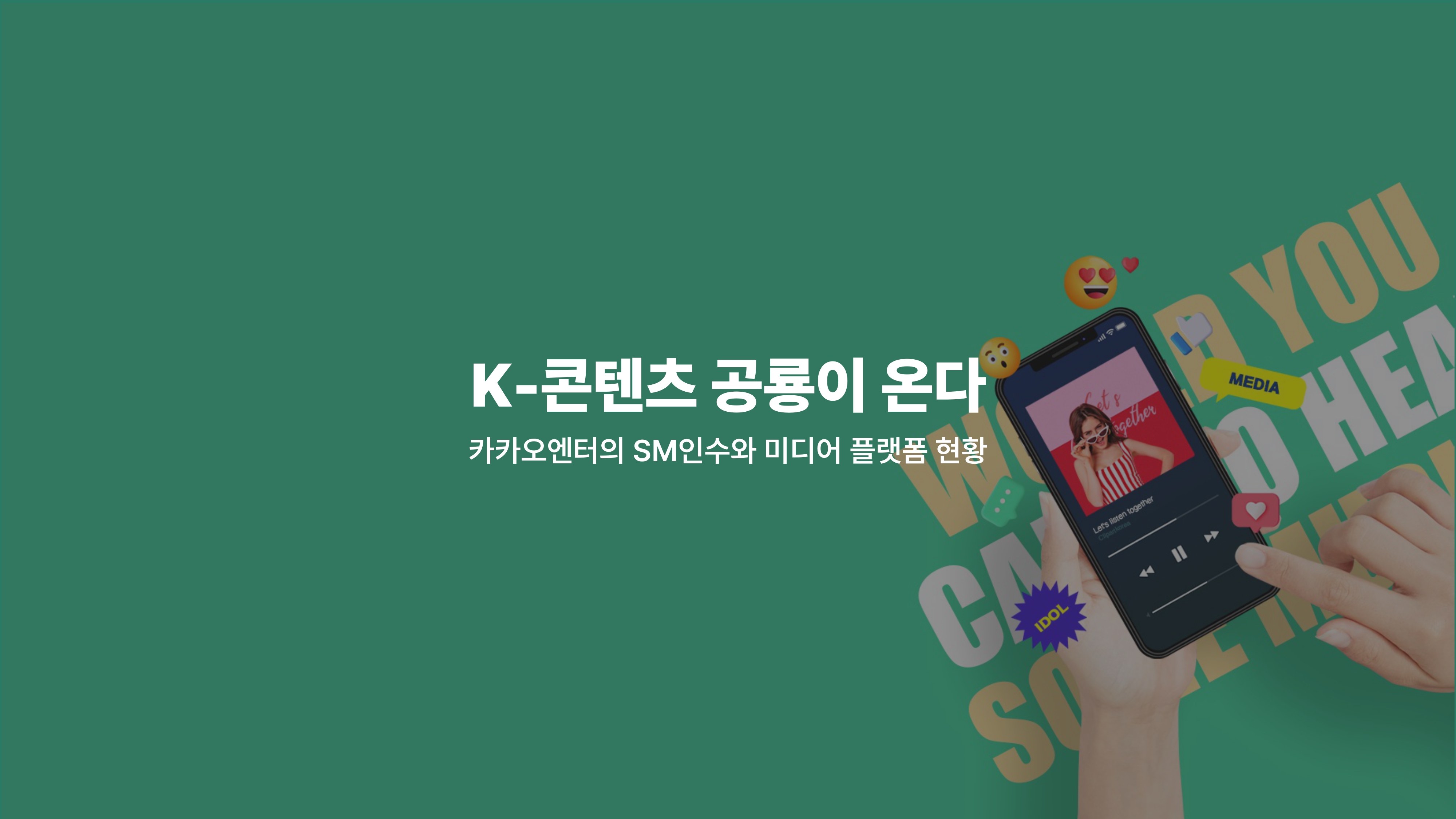 오늘은 SM엔터테인먼트 인수로 핫한 팬덤 앱과 엔터테인먼트 업계의 미디어 플랫폼 앱 시장 현황에 대해서 알아보겠습니다.