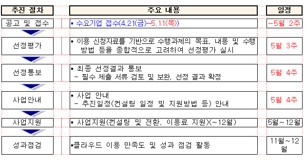 ‘2023년도 중소기업 클라우드서비스 보급 · 확산 사업’ 진행 일정 (출처: 정보통신산업진흥원)