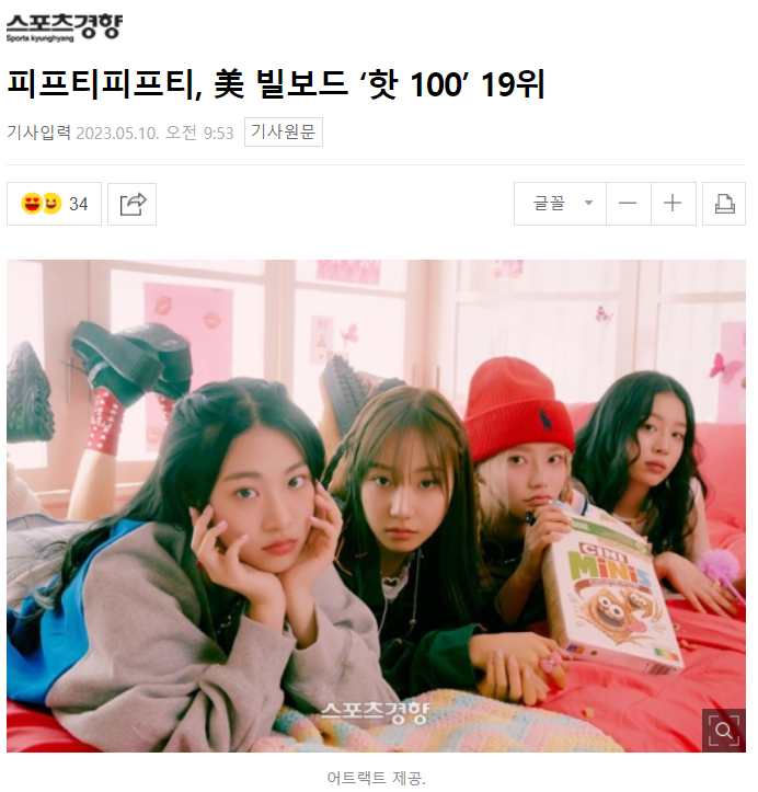 피프티피트피, 미국 빌보드 핫 100 19위- 출처: 스포츠경향