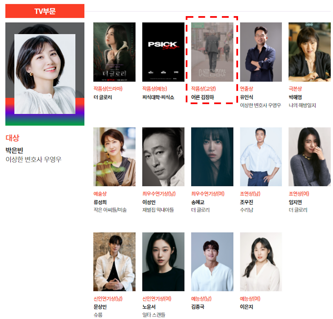 2023년 백상예술대상 TV부문 시상자 (지상파 단 1개) - 출처: 제59회 백상예술대상