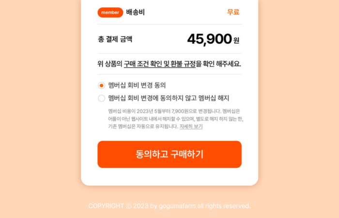 제품 구매 과정에서 자연스럽게 멤버십 자동 갱신을 유도하는 사례
