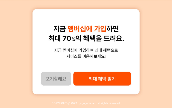 브랜드가 의도한 행동을 선택하지 않으면 사용자 스스로를 바보처럼 느끼게 만드는 유형이에요. “불편하지만 웹으로 볼래요”, “혜택 포기할래요”, “비회원으로 비싸게 사기” 등의 문구가 해당되죠. 이 유형은 특히 사용자의 목소리로 작성되는 경우가 많은데요. 좋은 사용자 경험을 제공하기 위해서는 적절한 언어와 톤을 사용하여 사용자를 존중하는 모습을 보여주는 것이 중요하답니다.