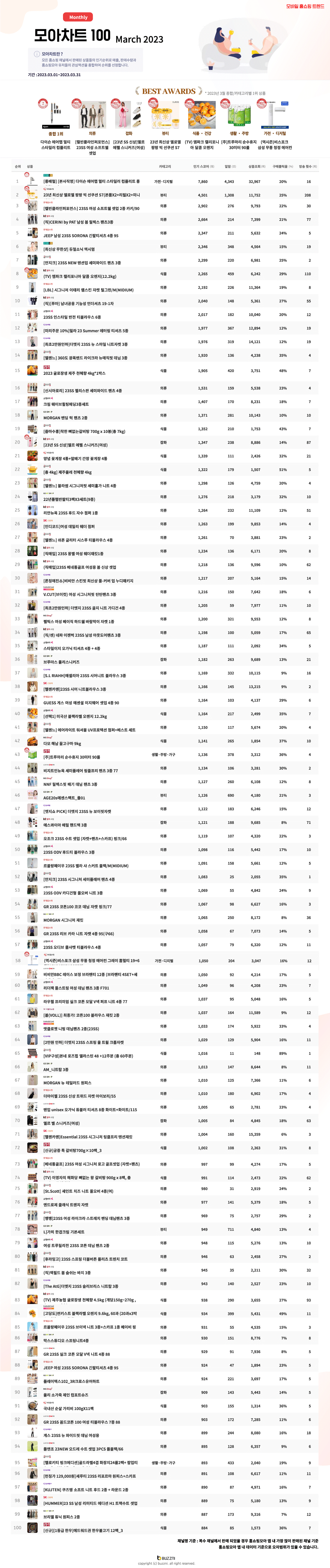 [모아차트] 2023년 3월 홈쇼핑 TOP100은?