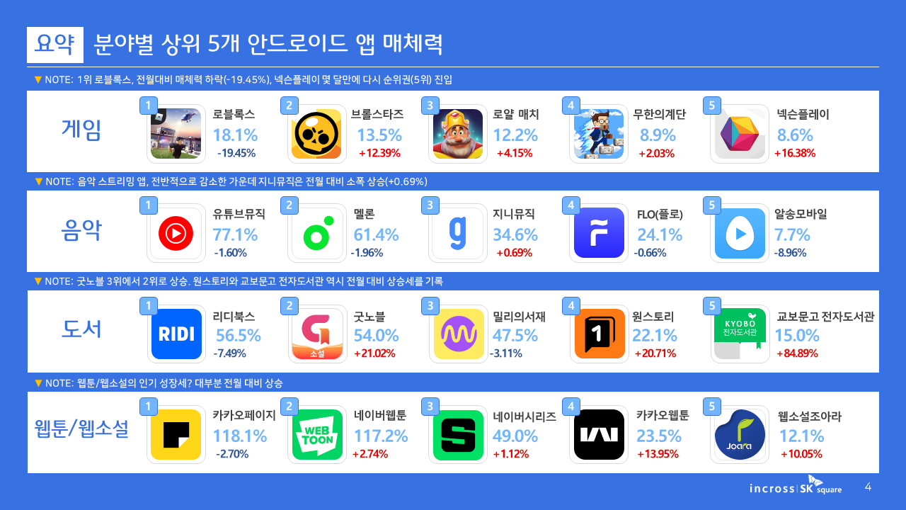 🪄 게임: 1위 로블록스, 전월대비 매체력 하락(-19.45%). 넥슨플레이 몇 달만에 다시 순위권(5위) 진입
