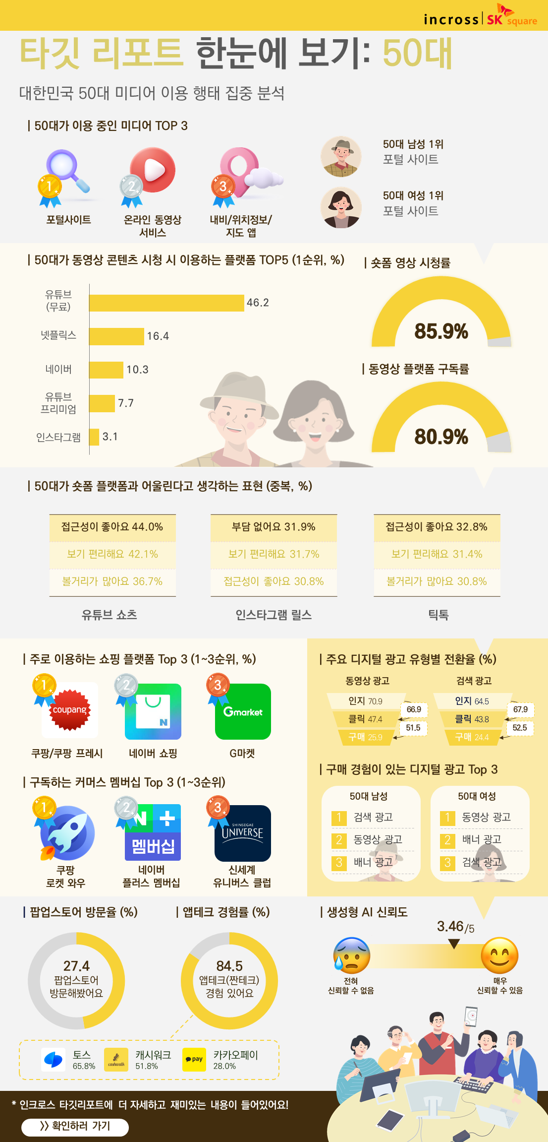 본 인포그래픽은 2024년 인크로스 타깃 리포트_I AM 50대를 토대로 작성되었습니다.