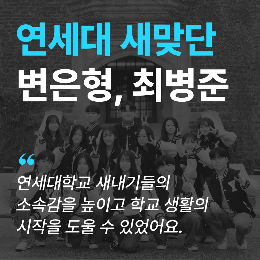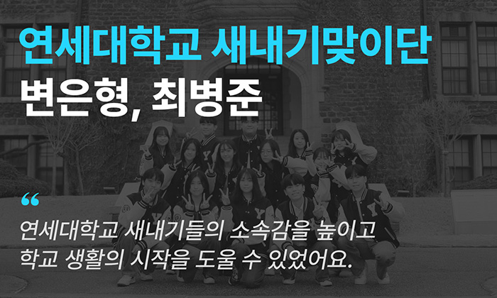 오늘은 연세대학교 중앙 새내기맞이단의 단장 변은형 님, 부단장 최병준 님을 만나보았어요!