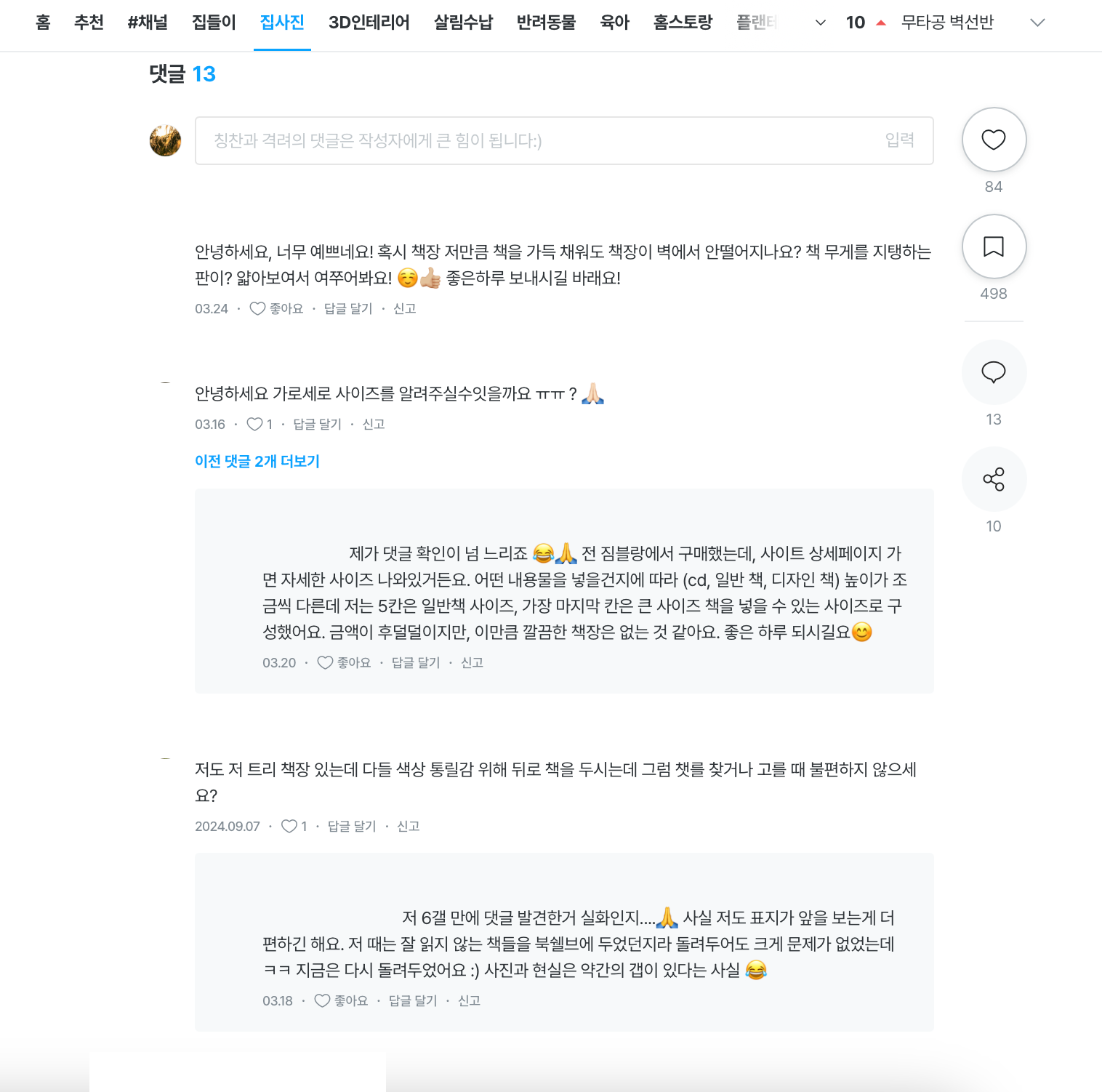 오늘의집 커뮤니티 주요 콘텐츠로 '집들이', '집사진', '3D 인테리어' 탭에서 유저가 직접 작성한 콘텐츠를 볼 수 있는데요.