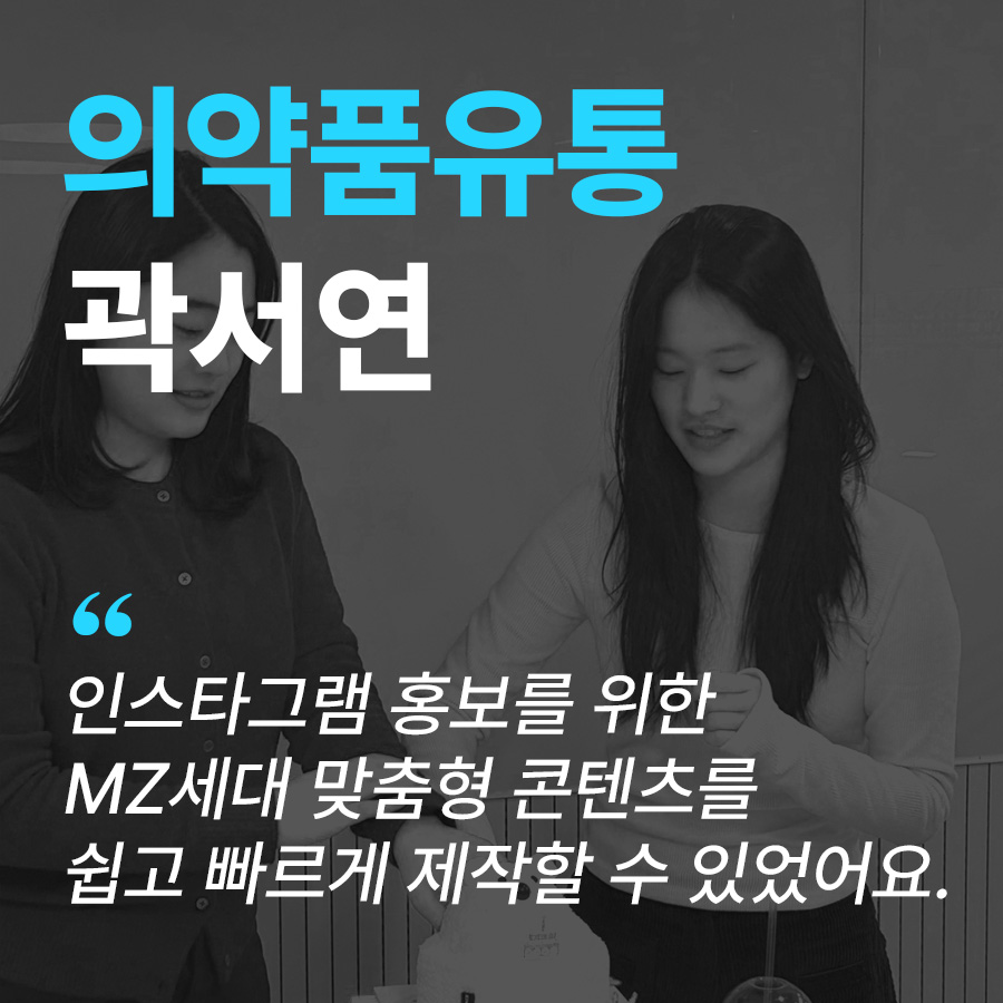 안녕하세요! 숙명여자대학교에 재학 중인 곽서연입니다. 의약품 유통 플랫폼 서비스 기획 부서에서 6개월 동안 인턴을 했었어요. 주요 업무는 인스타그램 콘텐츠 기획 및 운영과 라이브 쇼핑 기획이었답니다!