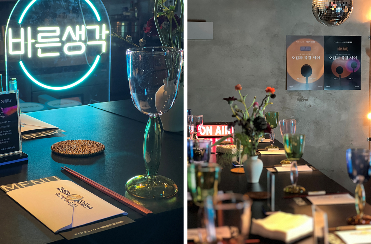 최근에는 진솔하게 성과 사랑에 대해 대화할 수 있는 ‘바른생각 컬처클럽’을 열었어요. 12명 내외의 소규모 오프라인 모임을 통해 바른생각이 전하고자 하는 가치를 체험할 수 있는 자리를 만들었습니다. 1기는 연기 클래스, 2기는 토크 모임, 3기는 다이닝을 테마로 진행했어요. 회차별로 최소 10:1의 경쟁률을 보인 행사라 브랜드 입장에서도 '이런 자리가 필요했구나' 하는 용기를 얻을 수 있었습니다. 앞으로도 다양한 주제와 형식을 통해 오프라인에서 만나기를 기대하고 있습니다.