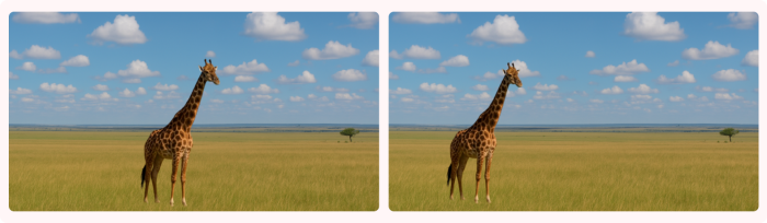 이러한 3등분 법칙이 깨지면 가장 큰 문제는 시선이 분산되어 몰입하기가 어려워진다는 것입니다. 전달하고자 하는 걸 알 수 없고 장면의 균형이 맞지 않게 돼요. 중앙에 있는 기린의 모습(왼쪽 사진)은 정적이고 지루하게 느껴지는 반면 3등분 법칙을 지켜서 찍은 기린의 모습(오른쪽 사진)에선 역동성을 느낄 수 있습니다. 오히려 중앙에 있을 때보다 균형이 맞는 듯한 안정감이 있고, 기린과 배경의 거리감이 느껴져 시각적으로 지루하지 않습니다.