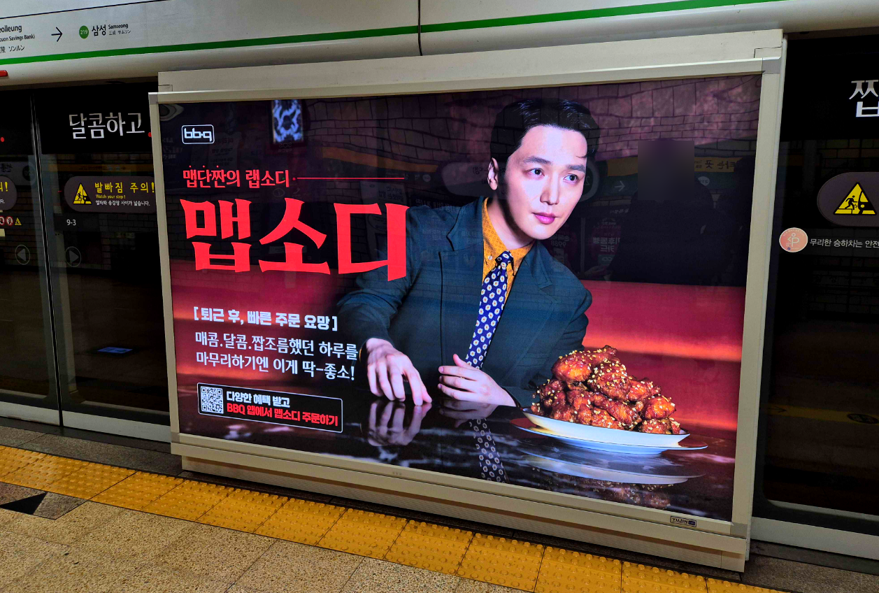마지막으로 BHC는 신유빈 선수를 모델로 지하철 2호선의 메트로라이브 매체를 활용해, 콰삭톡이라는 신메뉴를 홍보하기도 했습니다. 메트로라이브는 2호선을 이용하는 고객들에게 영상의 형태로 노출시킬 수 있는 매체로, 직장인들에게 반복적으로 생생한 광고소재를 노출시키고 싶은 분들께 추천드립니다.