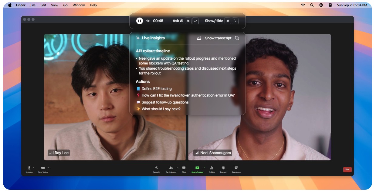 Roy가 창업한 Cluely(클루이)는 화상미팅이나 면접, 과제 등에서 활용할 수 있는 AI 도구입니다. 다른 참여자들에게는 보이지 않고, 오직 나에게만 보이는 투명창에서 나에게 필요한 정보, 적절한 대답 등을 실시간으로 알려주죠.