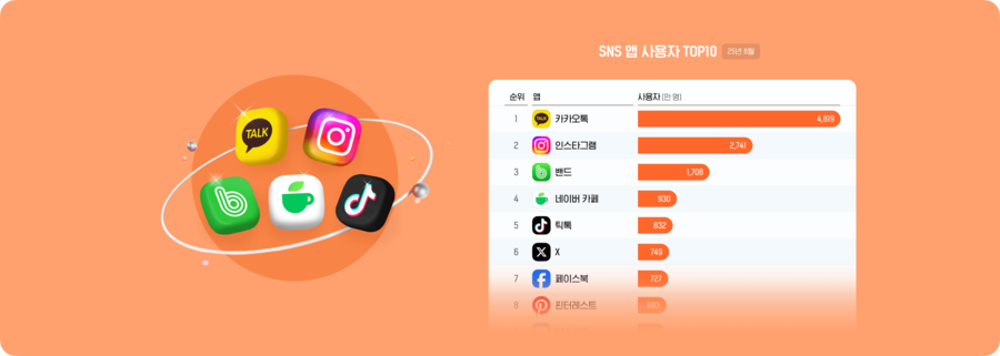 25년 8월 SNS 앱 동향: 당신은 어떻게 'SNS 이웃'을 만들고 있나요?