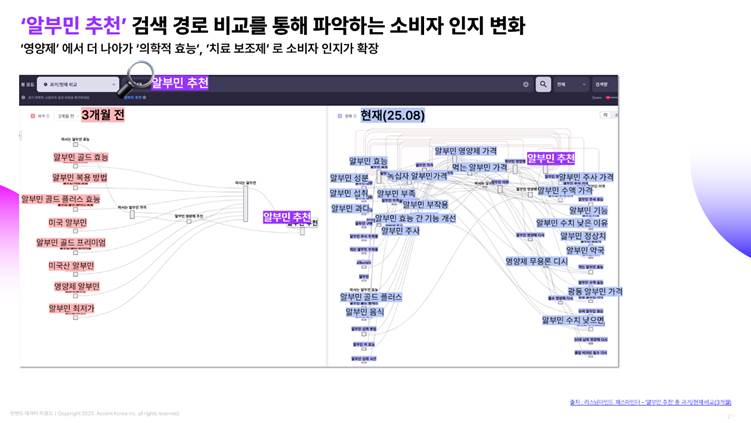 출처 : 리스닝마인드 패스파인더 – ‘알부민 추천’ 중 과거/현재 비교(3개월)