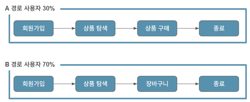 - 집단별 행동 차이 → 신규 사용자와 기존 사용자처럼 경로에 따라 집단을 나눌 수 있고, 그 차이도 분석할 수 있어요.