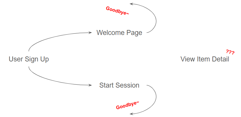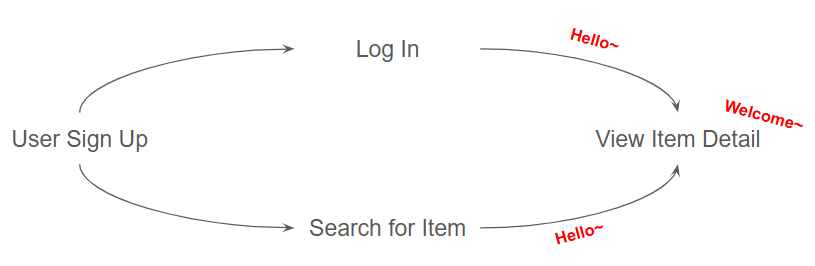 ⇒ 회원가입 후 대부분의 사용자는 Welcome Page 거치지 않고, 바로 View Item Detail로 약 92.6%가 도달함