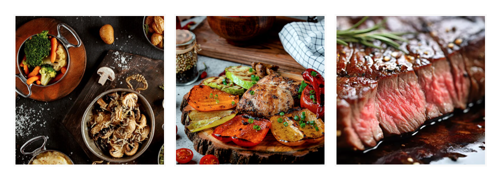 - 클로즈업 샷은 소스의 윤기나 고기의 질감 또는 익힘 등과 같이 디테일을 강조할 때 쓰면 좋아요.