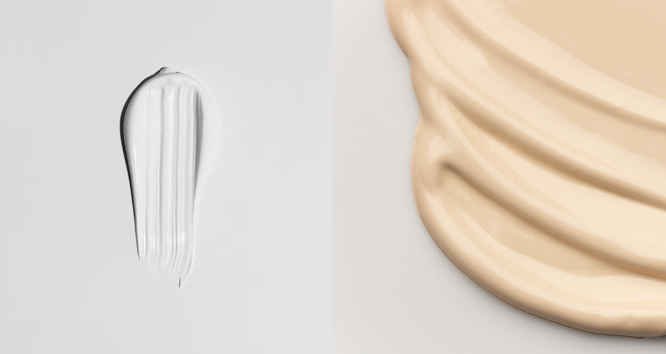 - 또는 숟가락을 활용해 크림을 떠낸 뒤 숟가락 끝으로 밀듯이 연출해 유려한 곡선을 만들 수도 있어요. - 딱딱한 제형 (립스틱, 밤, 파우더 등) : 제품마다 차이는 있지만, 보통 단단한 텍스쳐와 표면의 매끈함 등을 강조해요.