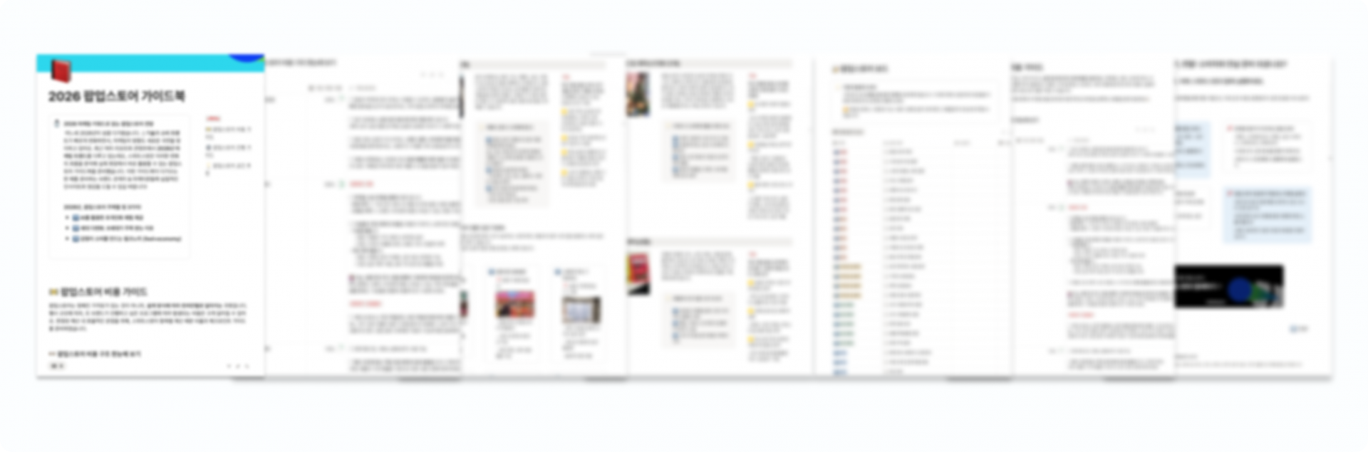 한 번 팝업스토어를 열려면 적지 않은 시간과 비용이 필요해요. 그래서 성공률을 높이려면 기획부터 운영, 마케팅까지 어느 단계도 허투루 넘어갈 수 없어요. 이번 〈2026 팝업스토어 가이드북〉에는 실제 운영 프로세스를 기획 → 준비 → 디자인 및 제작 → 굿즈 제작 → 운영 → 마케팅 총 6단계로 나누고, 각 단계별로 반드시 유의해야 할 핵심 포인트를 정리했어요.