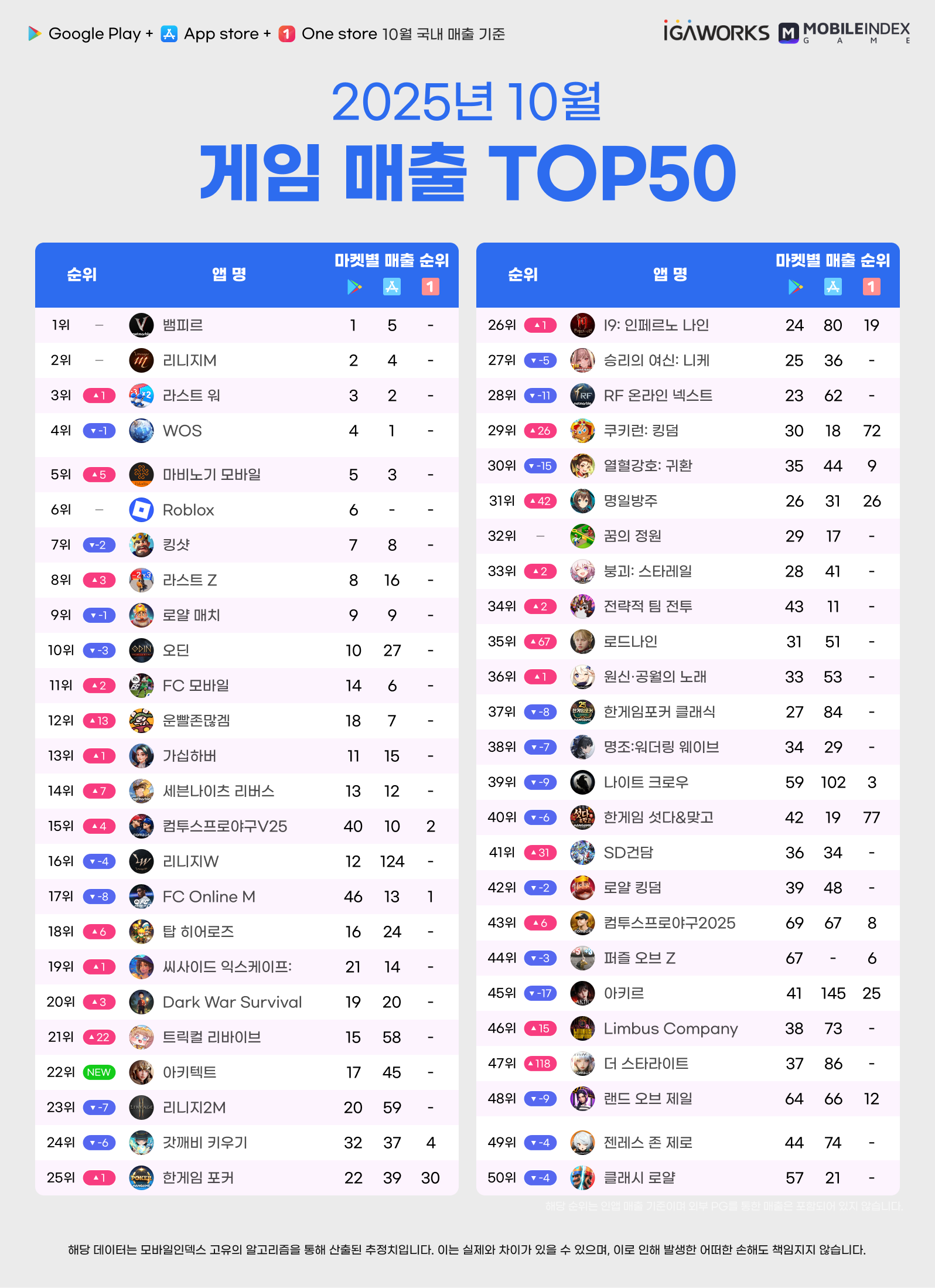 25년 10월에는 과연 어떤 모바일 게임들이 인기였을까요?