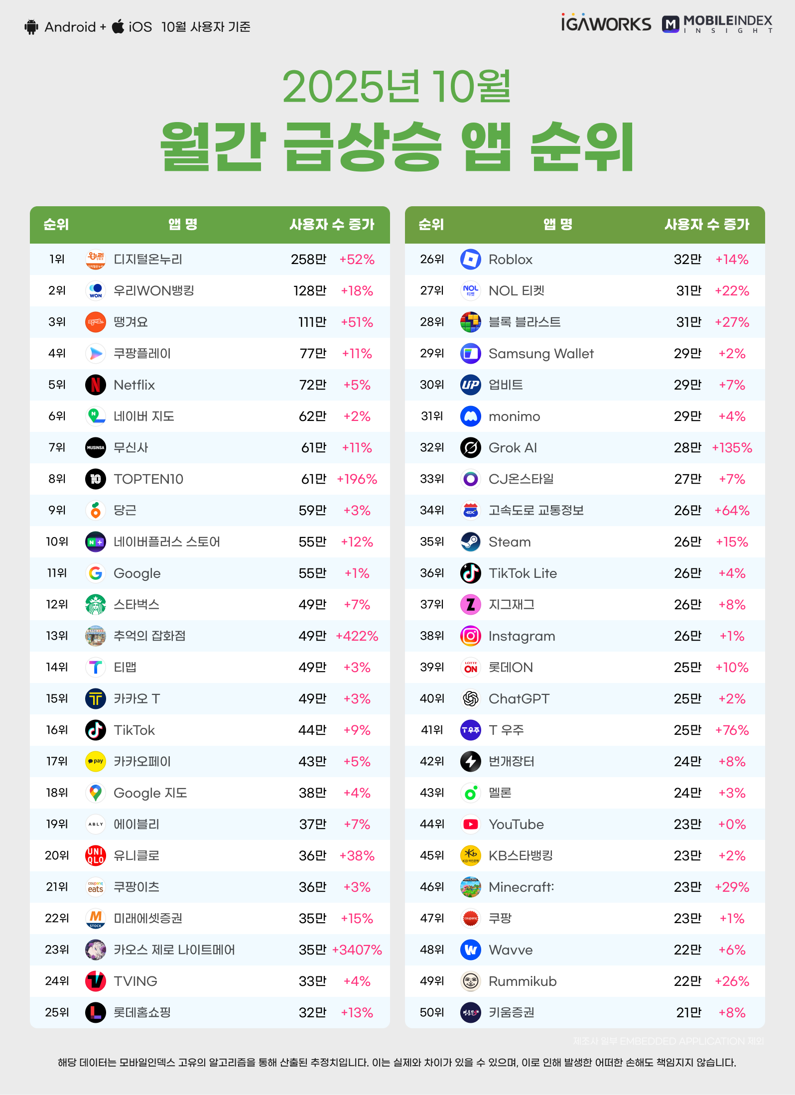 [10월 월간 급상승 앱 순위 TOP50]