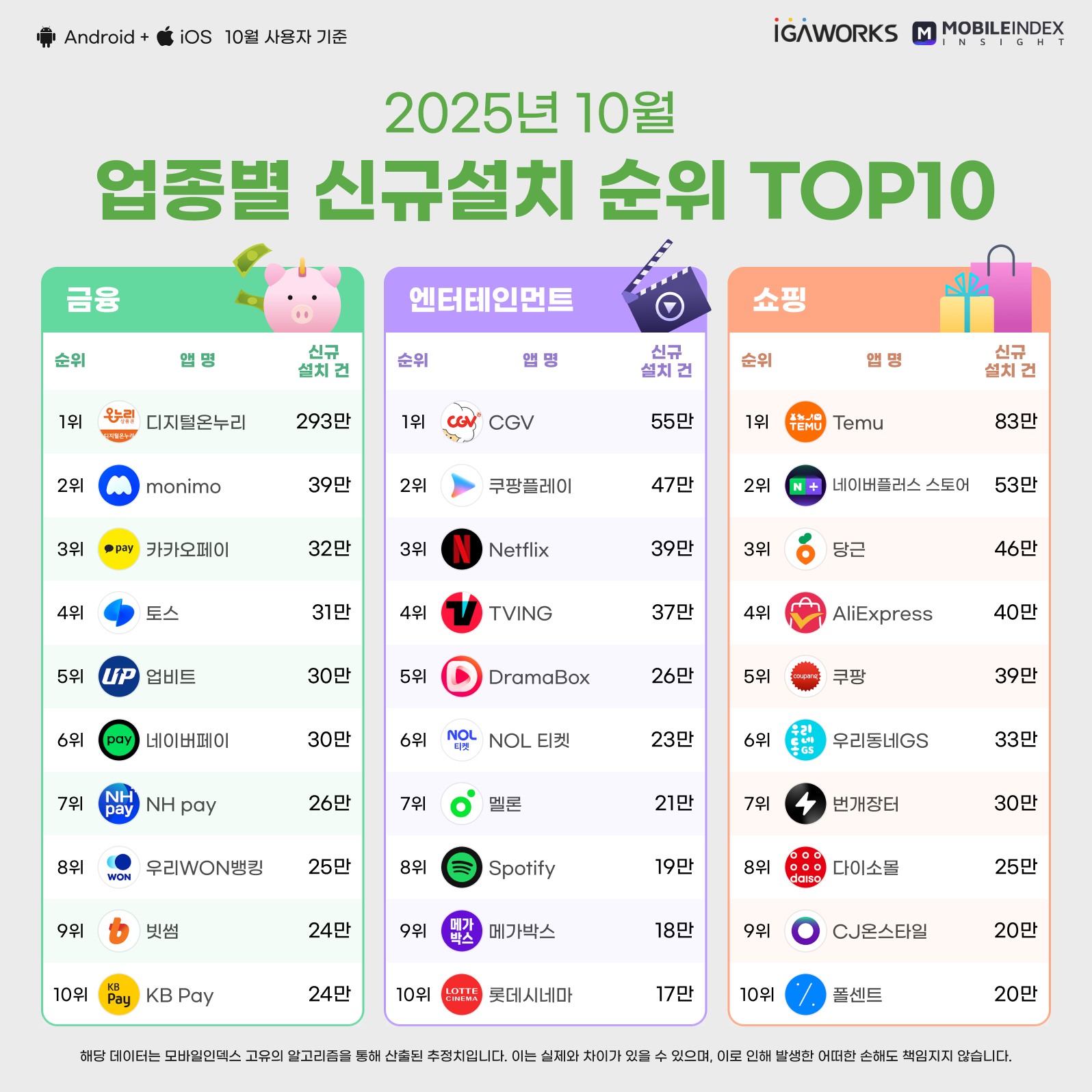 25년 10월에는 과연 어떤 모바일 앱들이 인기를 끌었을까요?