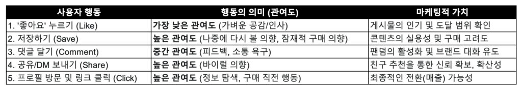 • 인스타그램 인플루언서 마케팅 성공의 핵심은 단순 팔로워나 좋아요가 아니다. 가짜 계정을 걸러내고 실제 구매 전환을 유도하려면, 잠재 고객의 강력한 의지를 보여주는 저장 수, 공유 수, 그리고 링크 클릭 및 프로필 분