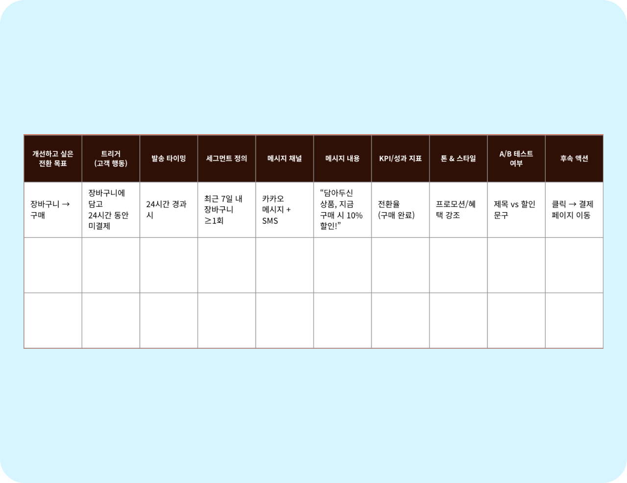 - 캠페인 연결—고객 여정에 맞는 메시지·채널 설계