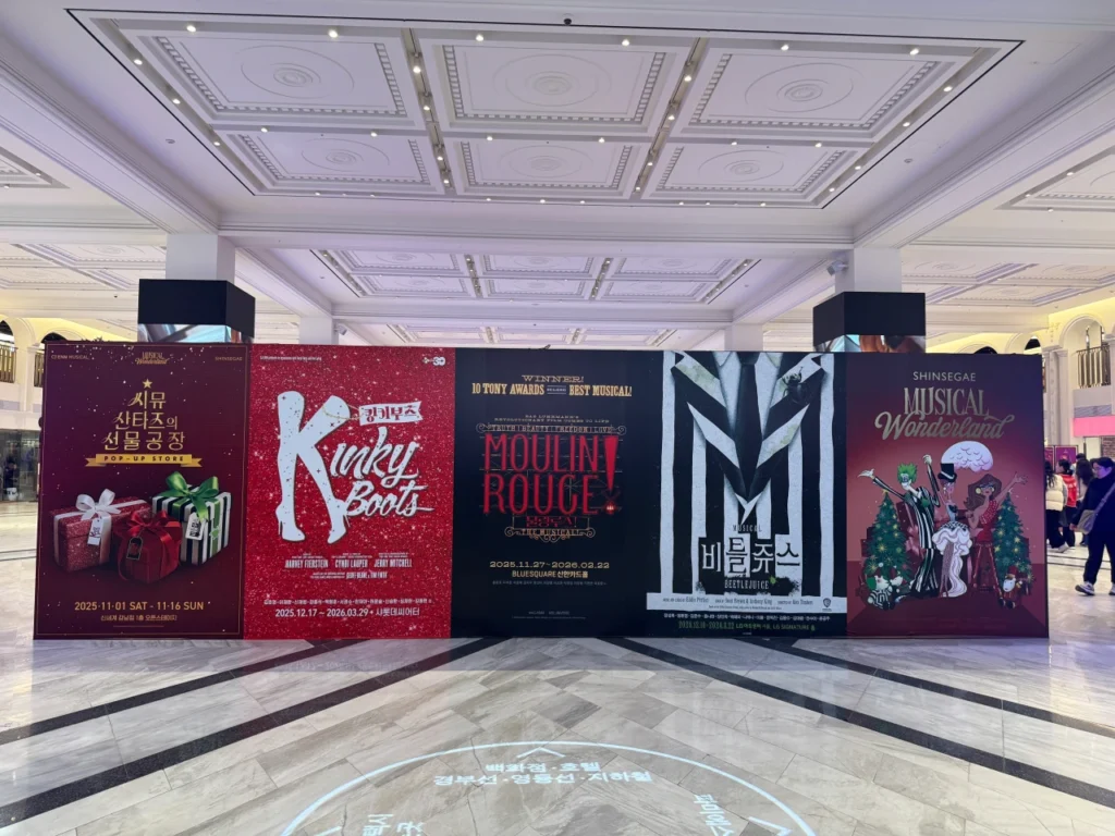 이러한 대중화 흐름의 정점에서, CJ ENM은 연말 대작인 '킹키부츠', '비틀쥬스', '물랑루즈' 세 작품을 엮어 고속터미널 신세계백화점 1층에서 통합 팝업스토어를 열었습니다. 국내 최고의 유동인구 접점에 거액을 들여 팝업을 설치한 이 파격적인 행보는 마케터들의 궁금증을 자아냅니다. CJ ENM은 왜 이처럼 공격적인 마케팅을 감행했을까요? 그리고 이곳에서 얻고자 했던 실질적인 목적은 무엇이었을까요?