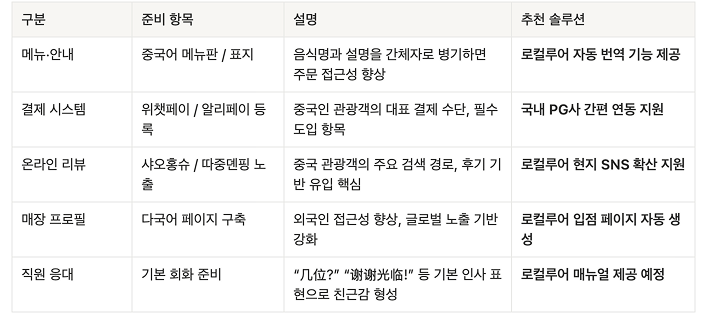 1️⃣ 메뉴판·안내문 다국어화 (특히 중국어 버전 필수)