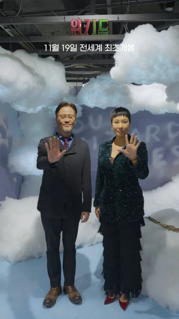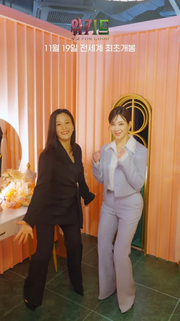 위키드 마케팅의 가장 빛나는 전술은 바로 '진정성 있는 로컬라이제이션'입니다. 외국 블록버스터의 한국어 더빙판은 종종 프로모션에서 소외되거나 '어린이 관람용'으로 인식되는 한계가 있었습니다. 하지만 위키드는 이 틀을 깼습니다. 전편과 마찬가지로, 한국 라이센스 뮤지컬에서 수차례 위키드의 주역을 맡았던 정선아(글린다), 박해나(엘파바) 등 국내 최고 배우들을 영화 한국어 더빙에 참여시켰습니다. 이는 단순히 목소리만 빌린 것이 아닙니다. 이 배우들은 위키드 IP에 대한 깊은 이해도와 이미 확고한 팬덤을 갖추고 있습니다.