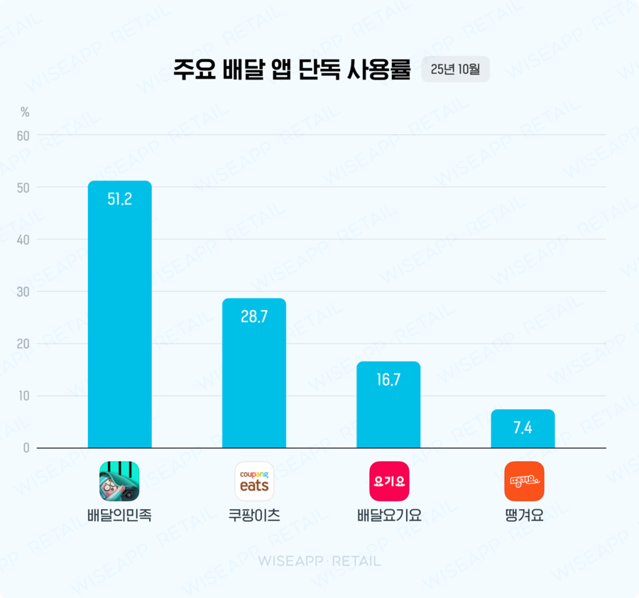 배달 앱 4사 중에서 가장 많은 단독 사용자를 보유한 앱은 '배달의민족'