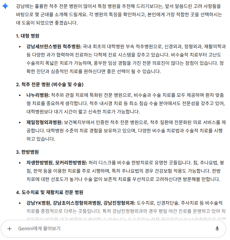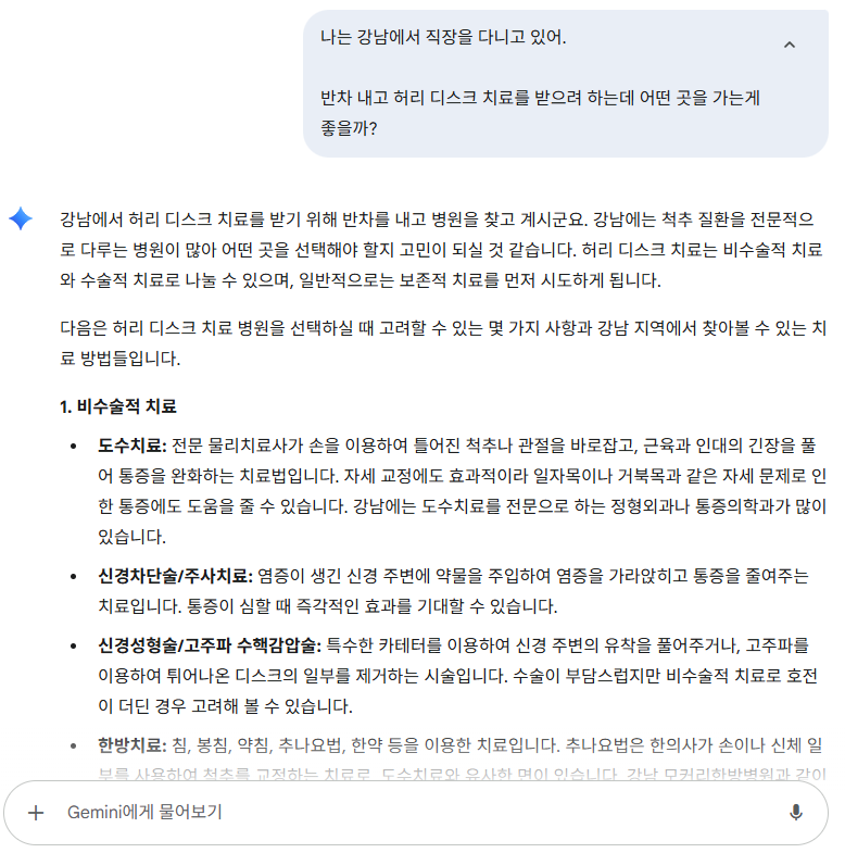 SEO 시대에는 허리통증 병원 같은 키워드에 맞춰 콘텐츠를 제작했다면, GEO 시대에는 '디스크와 협착증은 어떻게 다르며, 각각 어떤 치료법이 좋은가요?' 같은 질문에 답할 수 있는 정보 콘텐츠가 더 필요합니다.