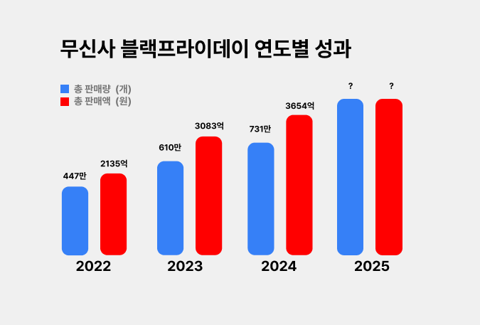 무신사는 시작 90분 만에 100억 원, 25시간 만에 600억 원 매출을 돌파하며 올해 블프의 가장 강한 존재감 중 하나예요. 판매량은 100만 개를 넘었고, 오프라인 매장에는 하루 2만 3천 명이 몰렸어요. 여기에 여행 플랫폼 NOL, 가상자산 거래소 업비트와의 연계 이벤트까지 진행하며 패션 중심 플랫폼이 라이프스타일 전반으로 확장되는 실험을 보여줬어요. 다양한 브랜드·카테고리·이벤트를 조합한 무신사의 전략은 한국형 블프 모델로 자리 잡아가고 있어요. 이처럼 플랫폼들이 할인 기간을 늘리고 이벤트 구성을 다양화하면서 블프는 점점 ‘단일 이벤트’가 아닌 ‘장기 캠페인’ 형태로 변화하고 있어요. 블프 소비가 분산되면서 셀러들은 더 빠른 준비가 필요해졌어요. 플랫폼별로 트래픽이 몰리는 시점이 다르기 때문에, 이에 맞춘 재고·가격 전략이 매출에 큰 영향을 줘요.