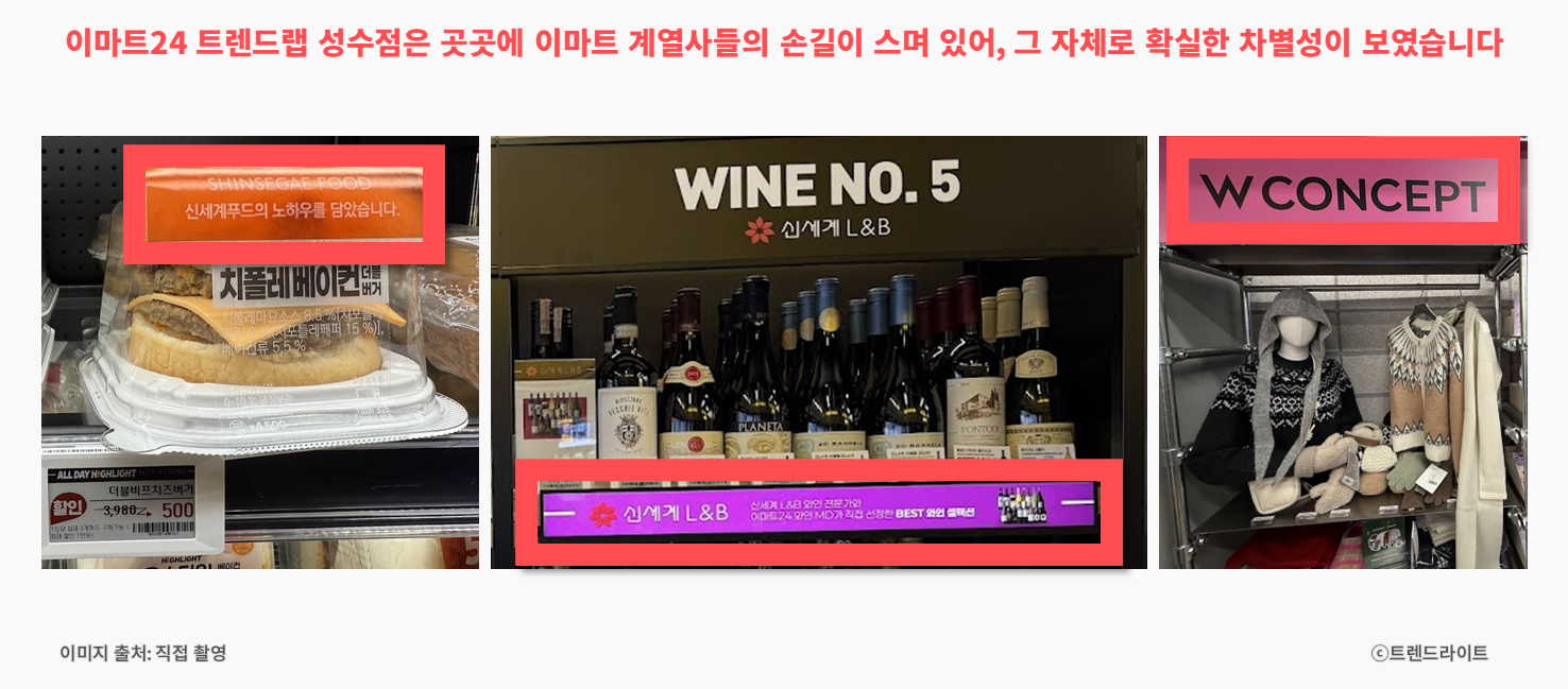 동시에 CU나 GS25의 자체 기획보다 신뢰감이 높게 느껴지고요. 계열사가 가진 인프라 덕분에 규모의 경제에서도 밀리지 않죠. 다양한 유통 채널·브랜드·제조사를 계열사로 보유한 이마트만의 강점입니다.