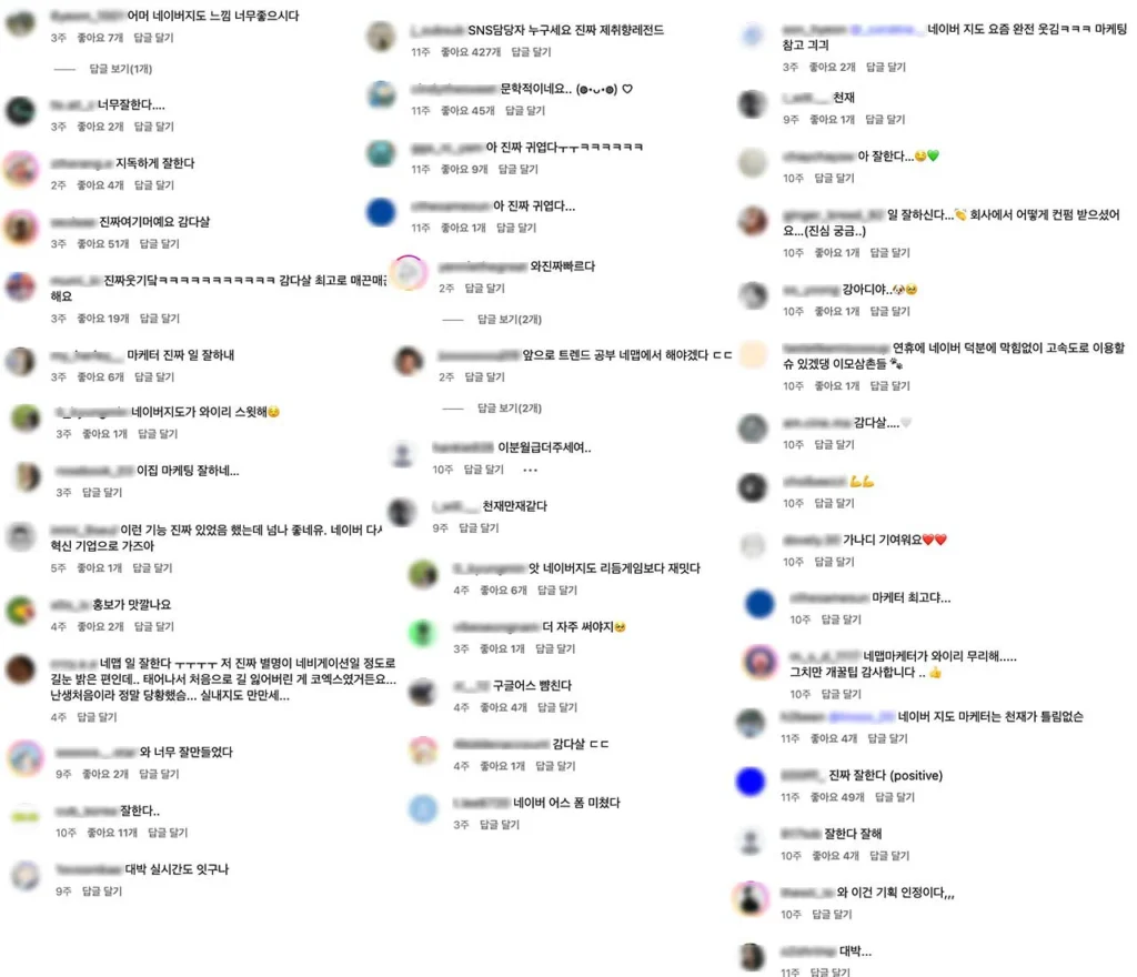 폭발적인 댓글 반응들 / 출처 = @navermaps_official 인스타그램